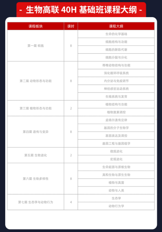 适用学员:初升高或高一没接触过生物竞赛但希望准备生物高联的学生