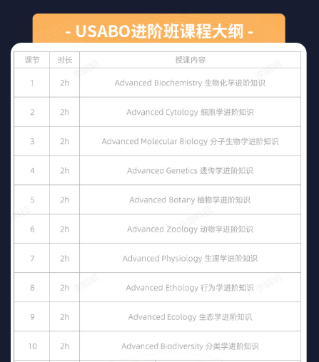 USABO进阶班:40小时,包含20小时USABO核心考点精讲+20小时USABO真题模考训练及考试技巧点拨,40小时课分20次上完,每次2小时。若你在校内课程中表现出色,却对竞赛模式感到陌生,适合通过系统的知识深化与完整的真题实战,搭建从课内到竞赛的思维桥梁,实现能力跨越。
