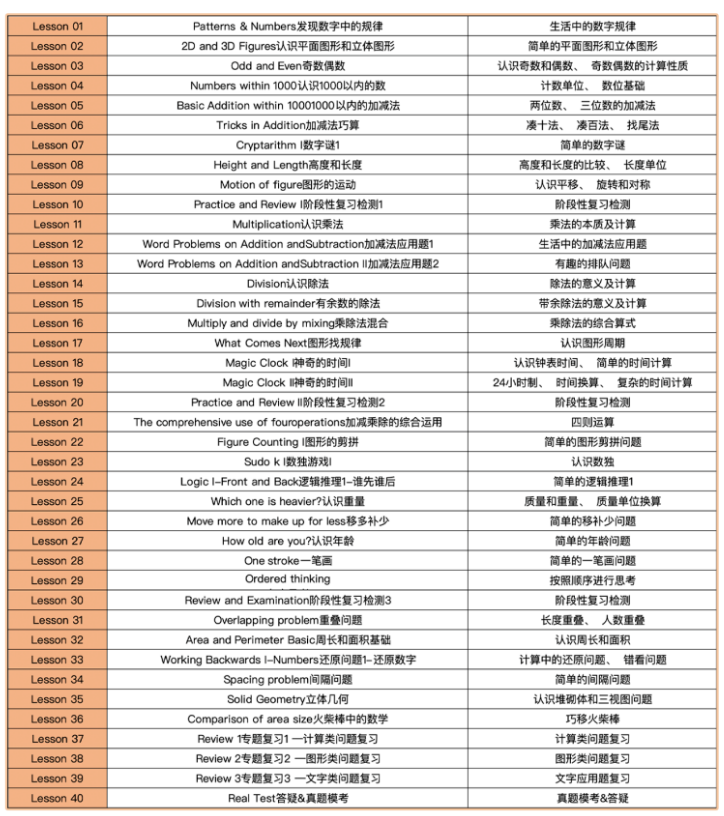课程内容:教授学生数乘除法、四则运算等知识点特别针对L1级别的新增考点,如奇偶数、加减法巧算、数字谜题等,帮助学生全面掌握竞赛所需的数学知识。