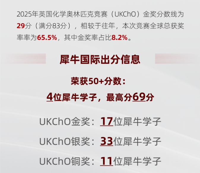 犀牛UKCHO课程有全程班、冲刺班、刷题班和直通车课程。全程班针对的是基础知识还不牢固,需要系统梳理的;冲刺课程直击考试重难点,遇到难题及时解答,不堆积学习问题,高效备考。全覆盖竞赛知识,结业即备赛其他化学竞赛。