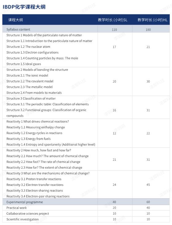IB化学涵盖了从分子化学、能量学到周期性、化学动力学和平衡的多个主题。IB化学属于IB六类学科组中的第四类-实验科学,分为SL和HL。SL的知识点由Core和Options组成,HL的知识点由Core,AHL和Options组成。SL一般需要150课时,而HL需要240课时的学习。考核分数由外部评价和内部评价组成。IB化学课程中占比20%的实践评估环节,由学校教师评分、IBO审核,是衡量学生实验能力的核心指标。