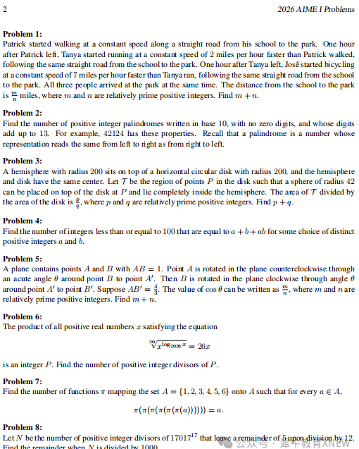 2026年AIME竞赛I卷真题解析,电子版已经给大家整理好啦!
