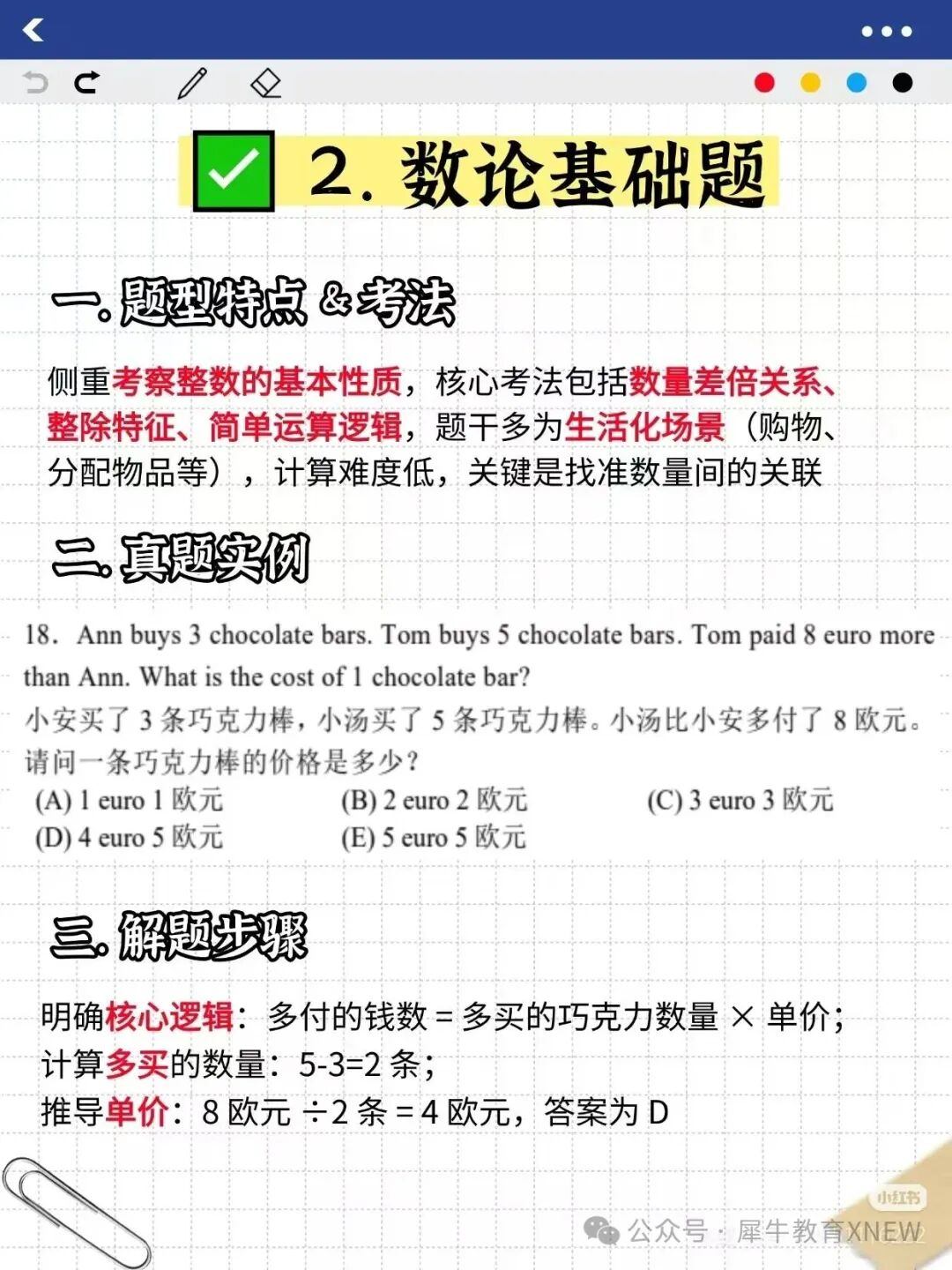 引导孩子从 “多买” 和 “多付” 的关系入手,建立 “单价 = 差价 ÷ 数量差” 的思维模型,避免直接列方程