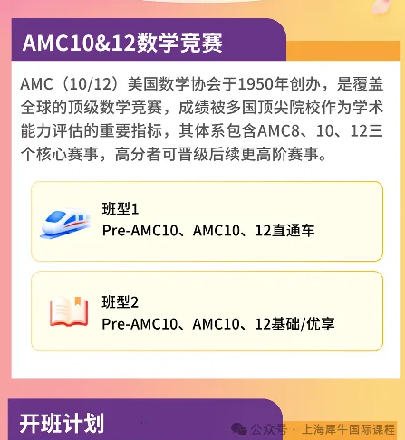 针对2026年AMC10竞赛,目前主要Pre-AMC10班、AMC10直通车、AMC10优享班、AMC10基础班等班型。