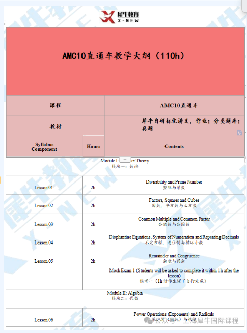 03自研专属教材:犀牛教研团队编写,精准对标AMC10考纲,覆盖四大模块,含纸质讲义+配套作业。