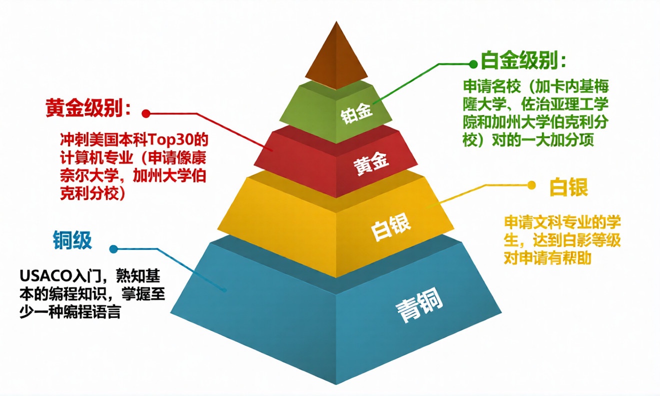 顶尖高校认可度高:达到Gold即具备高水平算法能力,在美本、英本、国际学校申请中极具竞争力,是理工科专业申请的 “黄金背书”。