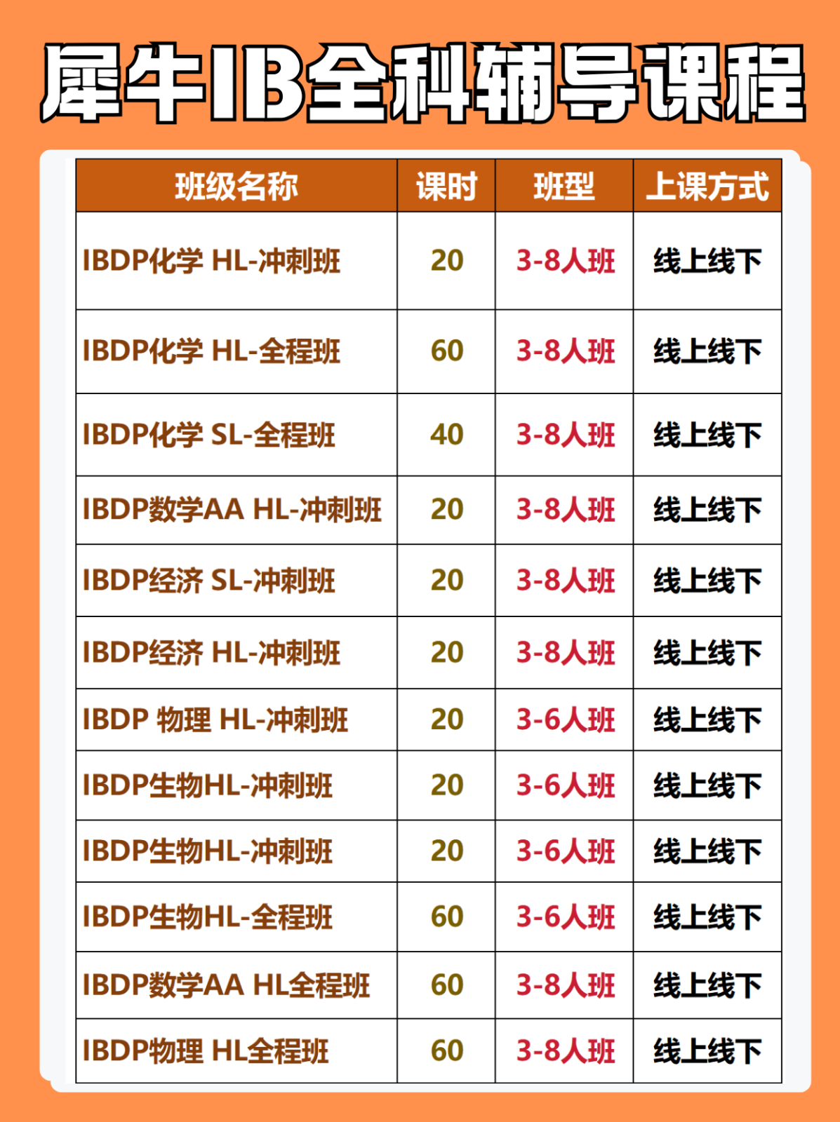 如果孩子需要IB课程辅导的,可一对一咨询,下附IB课程课表