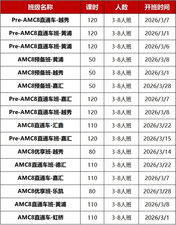想在2027年AMC8竞赛中突破高分,为后续AMC10能力衔接打基础的学生速来,2026年AMC8培训课程新班火热占位中!