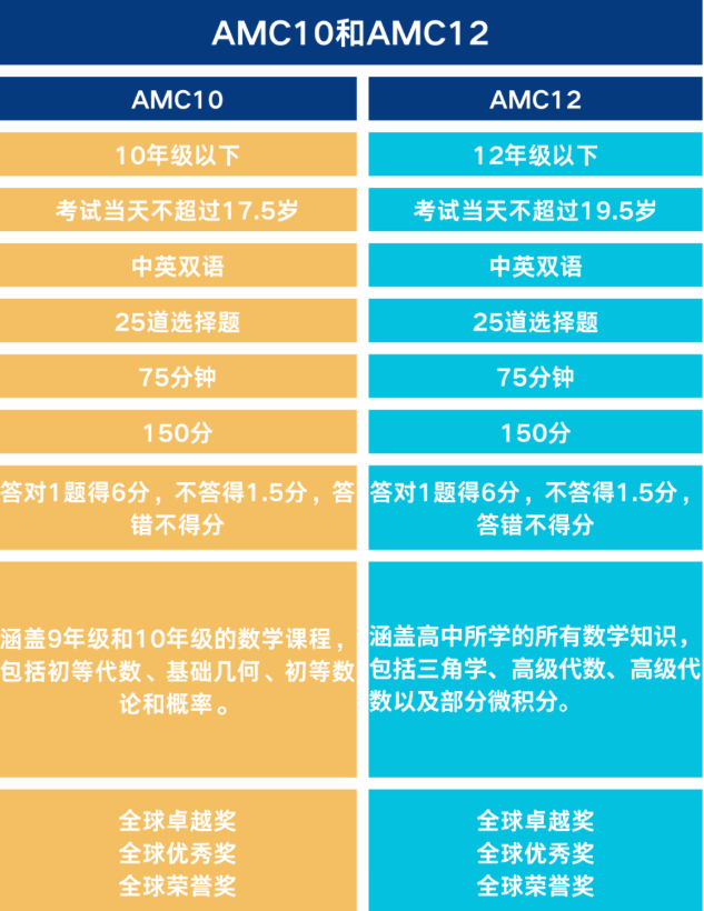 对于10年级的同学来说,AMC10/12都适合参加,但是选择更高难度可能会打击信心,而过于保守则可能浪费一次证明自己的机会。建议大家在选择AMC10/12之前先评估一下自身水平: