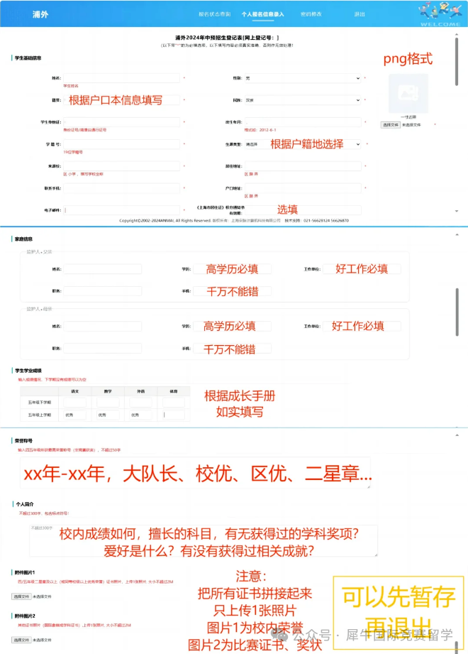 必备材料:四五年级成长手册、校内成绩单、各类竞赛与荣誉证书