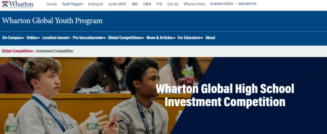 WGHS沃顿商赛是面向全球高中生的顶级权威投资类赛事,整体含金量与参赛难度均高于NEC、SIC、IEO等商科竞赛。参与比赛既能夯实金融专业知识,也能积累实战经历,显著提升海外名校申请竞争力。2026年沃顿商赛将于6月启动报名,本文整理了入门必备知识、组队规则,10—12年级海内外国际生可重点收藏! 该赛事由美国宾夕法尼亚大学沃顿商学院主办,表现优异的团队有机会获得高认可度推荐信。 参赛选手将以团队形式,对真实客户案例进行分析,并定制专属投资方案,最终完成客户方案竞标。
