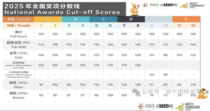 袋鼠数学竞赛历年分数线参考