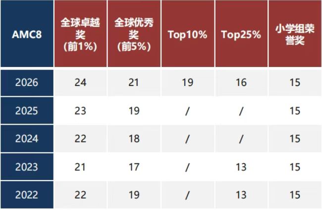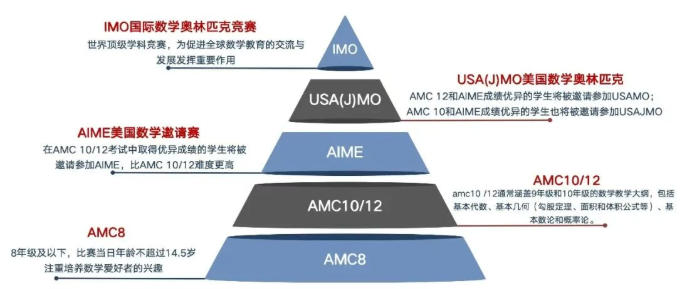 AMC8:主要注意培养数学爱好者的课外活动兴趣;通常涵盖初一和初二数学课程内容,包括通常涵盖了基础代数基础几何基础数论基础组合等知识。