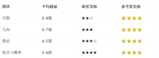 9年级是AMC10备考的“黄金期”,校内知识已基本覆盖AMC10基础考点,学生时间相对充裕,重点是“系统梳理四大板块、突破高频难点、提升解题速度”,目标冲击AMC10 100分以上(AIME晋级线)。