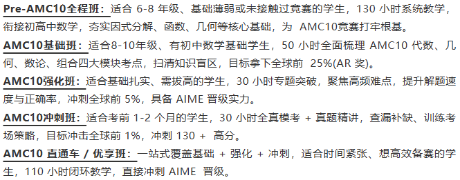 在专业的AMC10竞赛老师帮助下备考AMC10更高效。犀牛AMC10竞赛培训课程正在热招中。