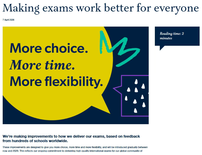 核心要点:本次改革将在 2026 至 2029 年间分步推进,核心宗旨是让考试围绕考生需求设计,而非让考生被动适配考试节奏。改革源于全球数百所学校的反馈建议,旨在为学生提供更丰富的选择、更充裕的备考时间与更高的安排灵活性,相关优化将分阶段落地实施。