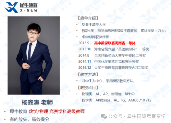 犀牛 AMC8 的师资团队星光熠熠,汇聚了斯坦福、麻省理工、清华、北大等顶尖名校出身的学霸老师,不少老师本身就是数学竞赛的获奖得主,人均拥有 4-8 年的竞赛教学沉淀,累计授课时长突破 4000 小时。